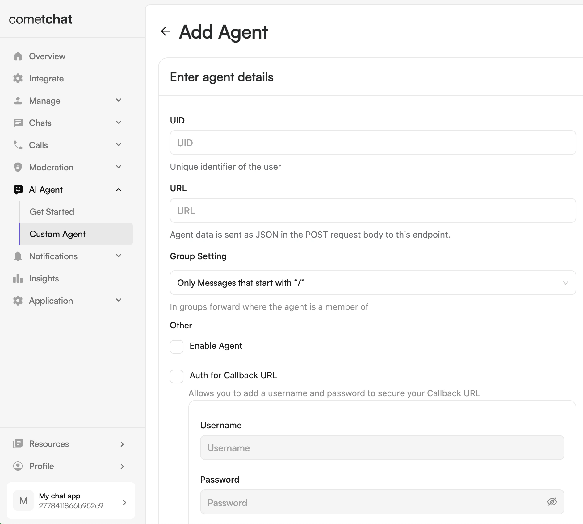 - URL: The callback URL of your agent.