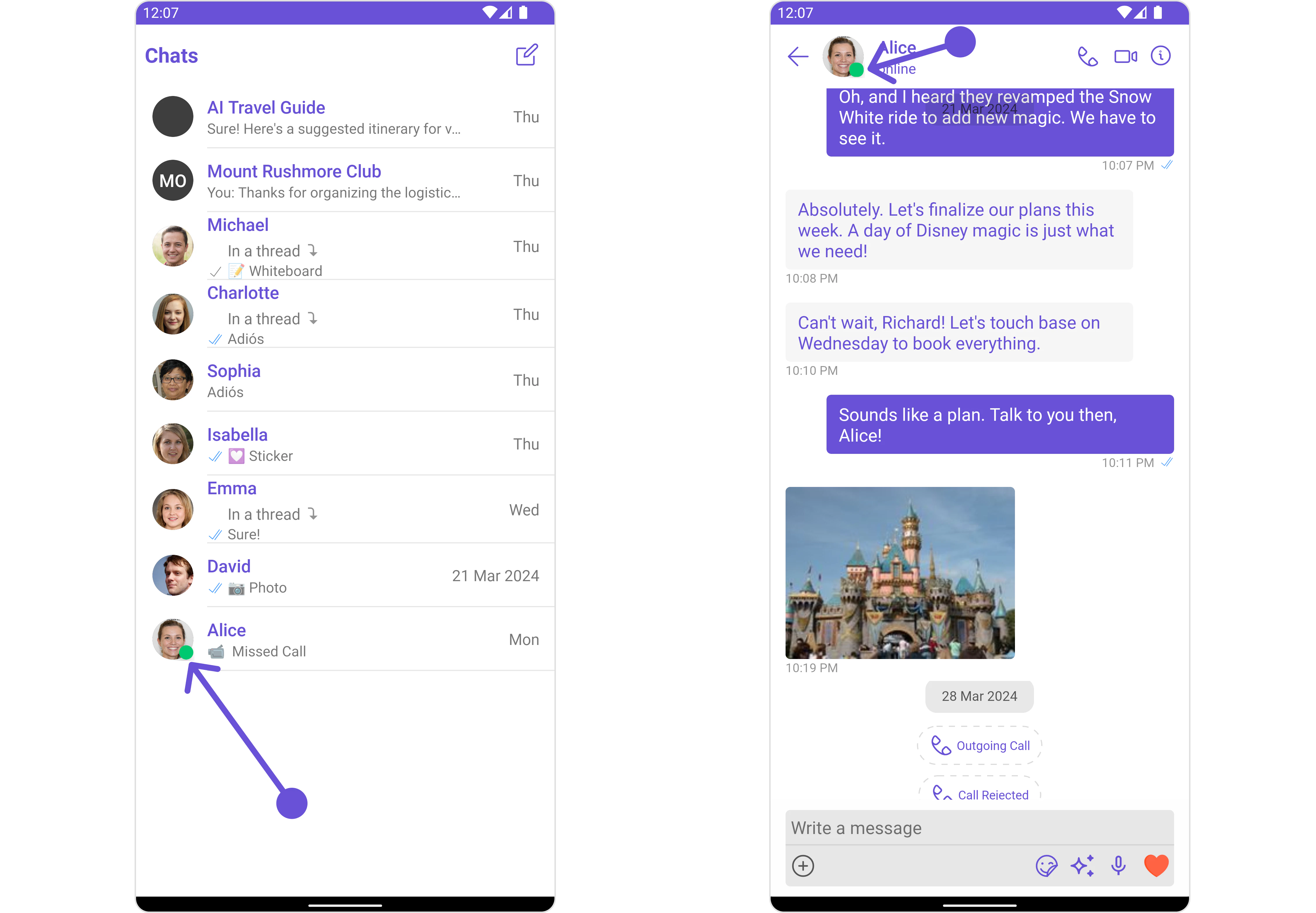 CometChat’s User Presence feature allows users to see whether their contacts are online, offline. This helps users know the best time to initiate a conversation and sets expectations about response times.