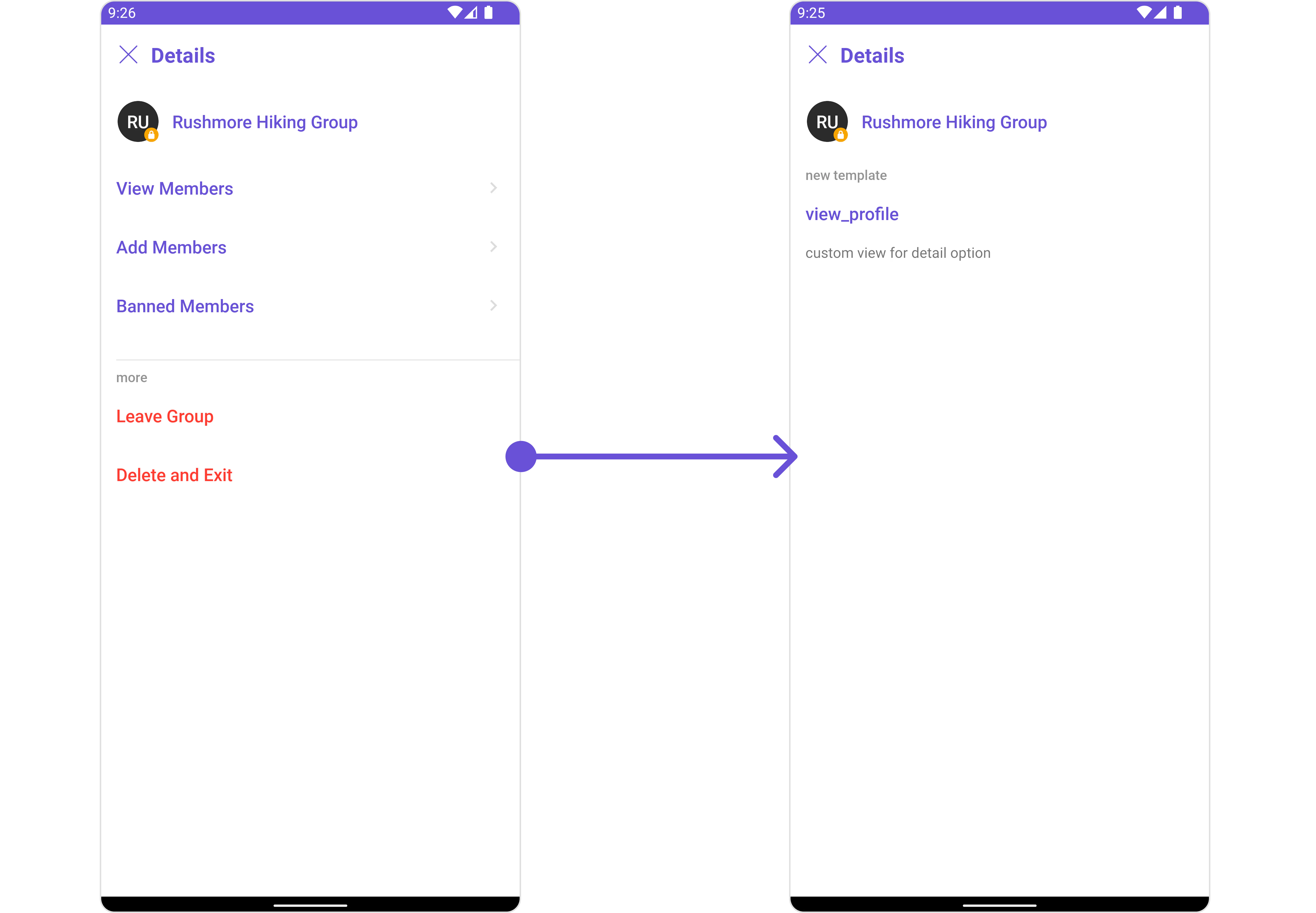 CometChatDetailsOption customViewOption = new CometChatDetailsOption(((context, user, group) -> {