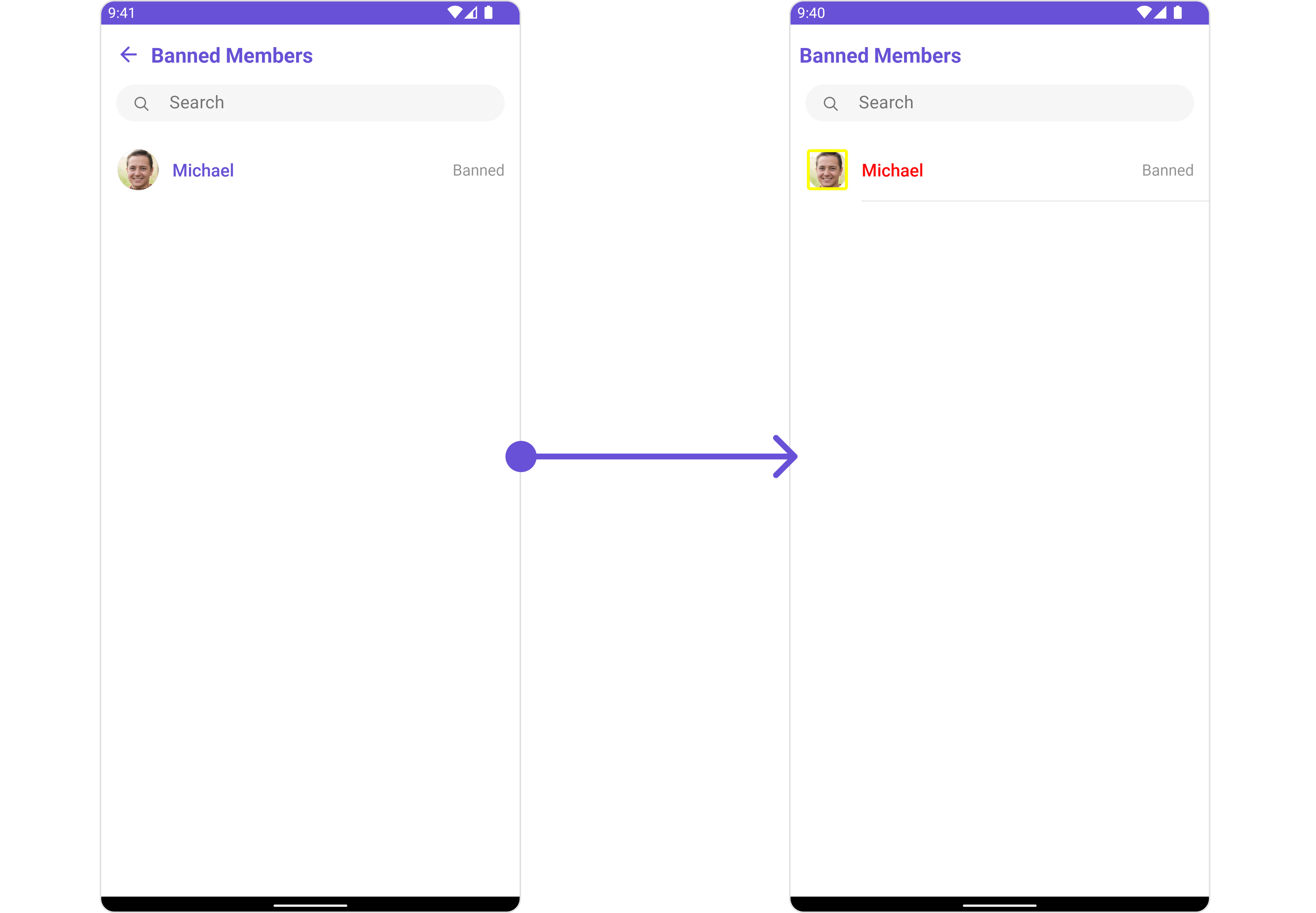 All exposed properties of BannedMembersConfiguration can be found under Banned Members. Properties marked with the 🛑 symbol are not accessible within the Configuration Object. Example Let’s say you want to change the style of the Banned Members subcomponent and, in addition, you only want to show the back button. You can modify the style using the ListItemStyle property and AvatarStyle property