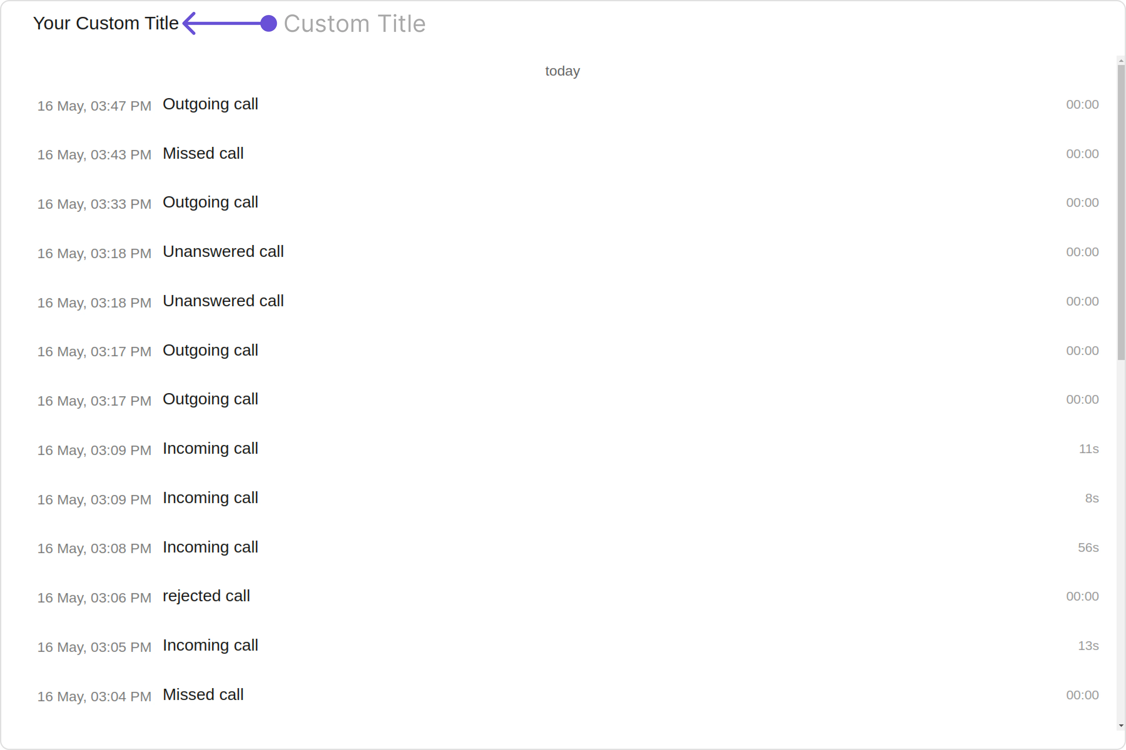 You can customize the subtitle view for each call log History item to meet your requirements Default: