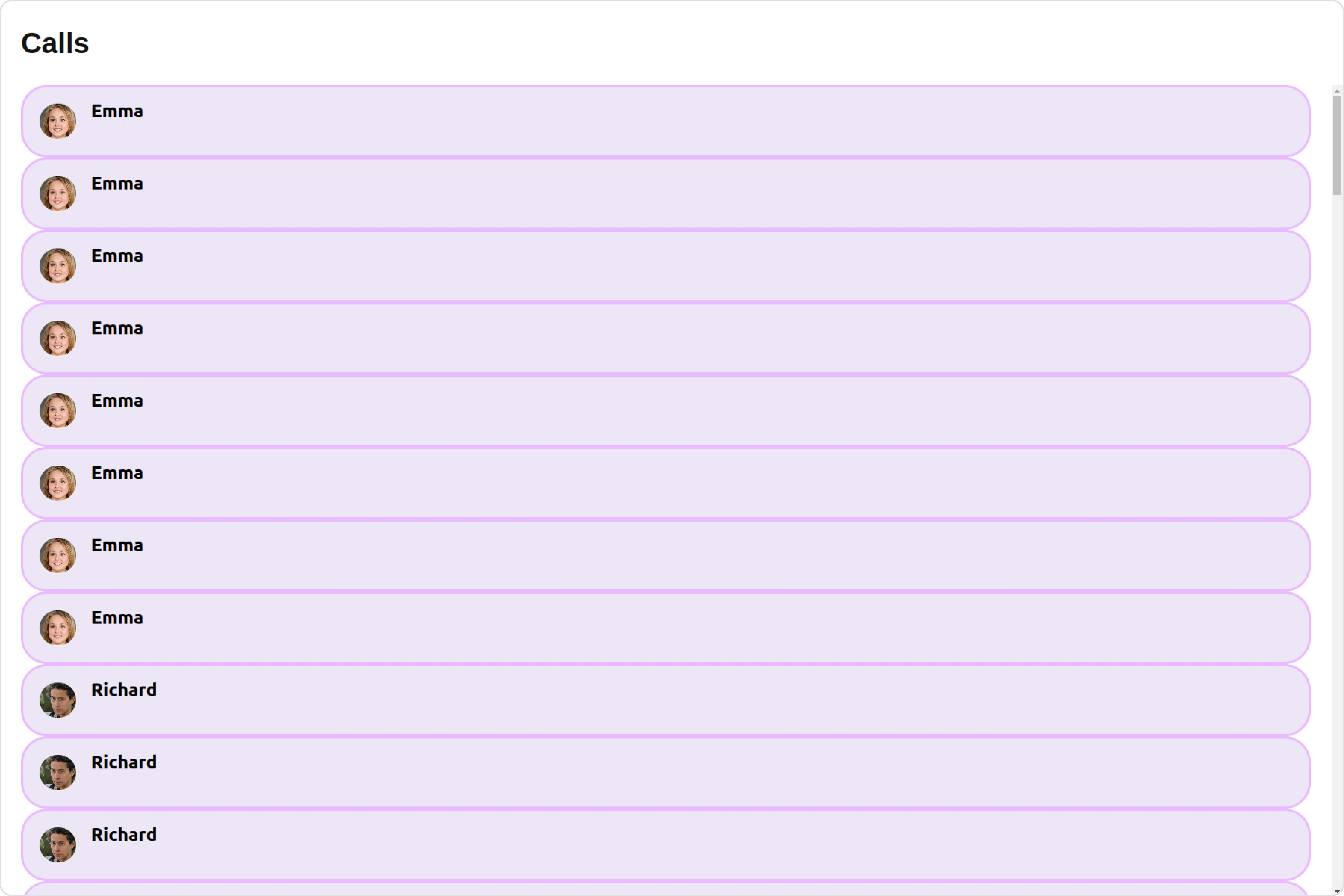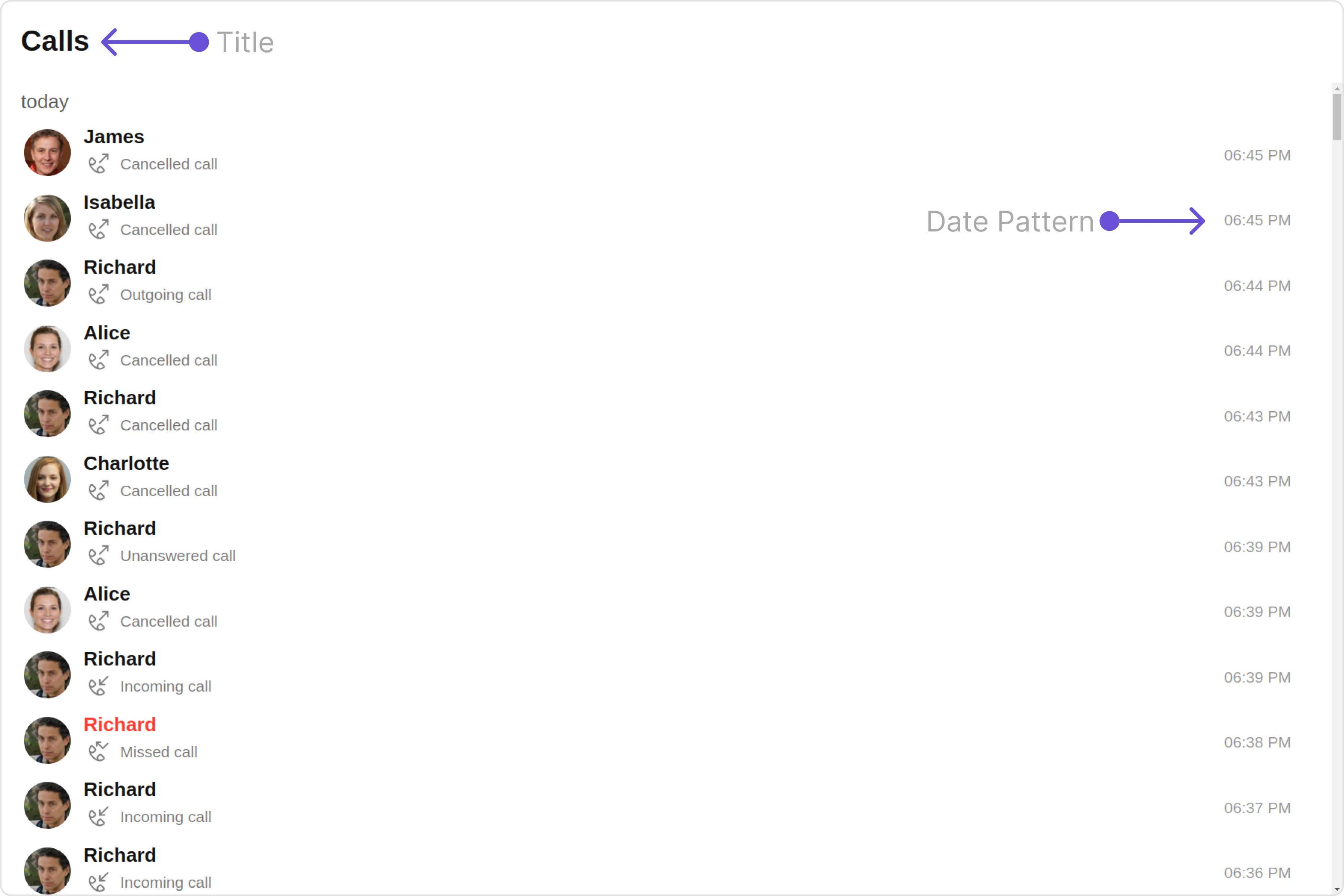 With this property, you can assign a custom ListItem to the Call Logs Component. Example Default:
