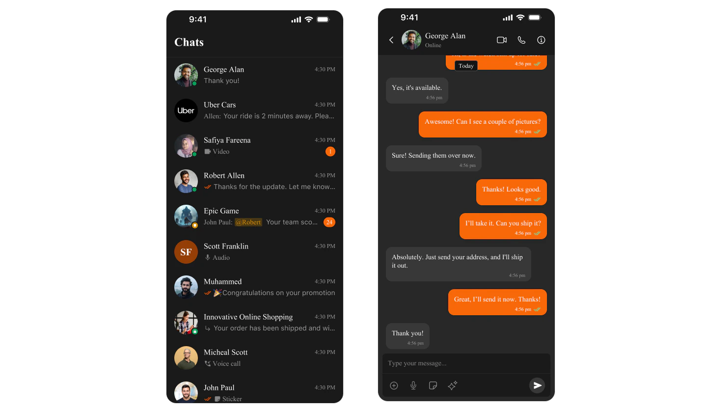 CometChat automatically adapts to system appearance. You can also customize dark mode colors:- Swift