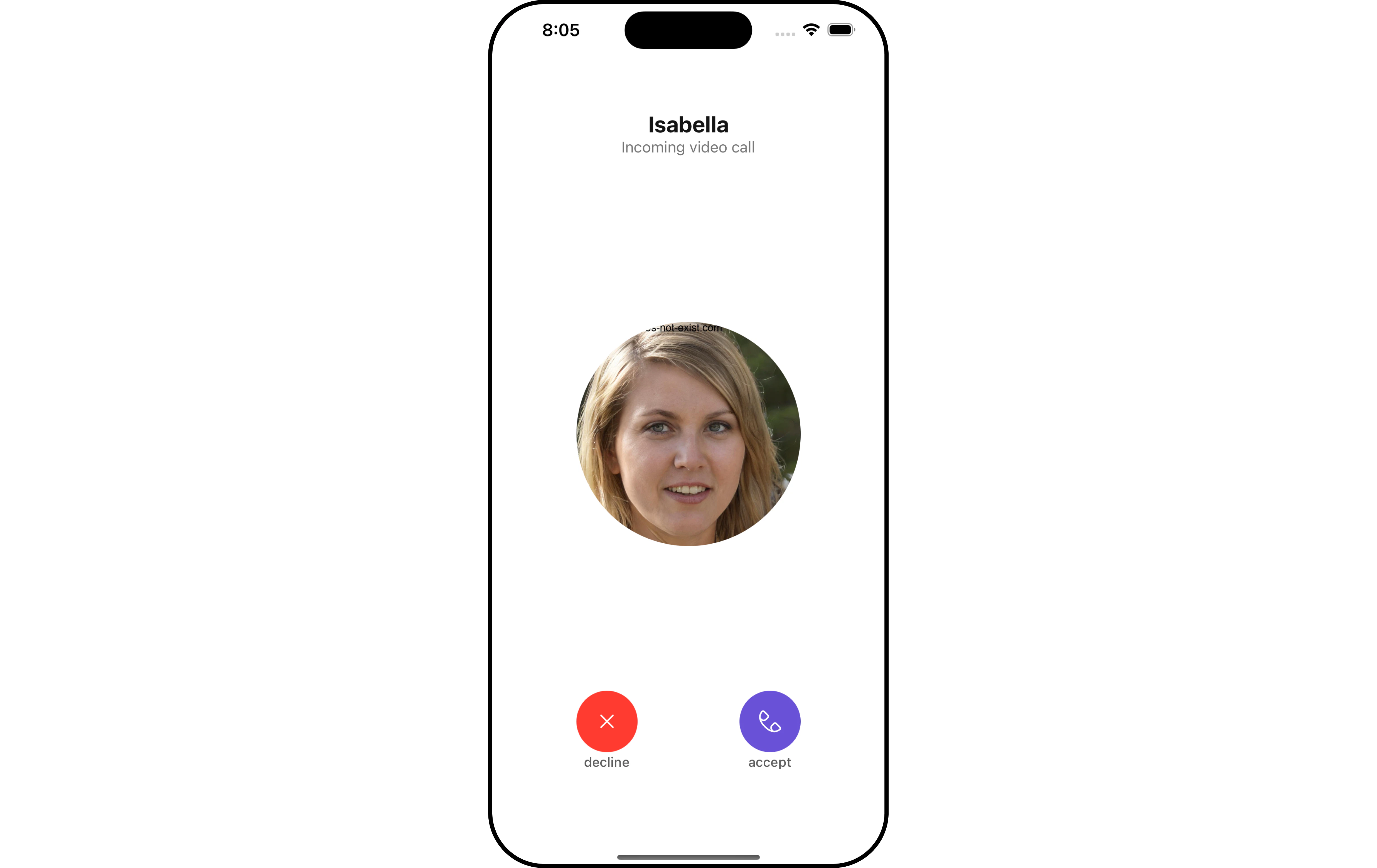 The Incoming Call component of the CometChat UI Kit provides the functionality that lets users receive real-time audio and video calls in the app. When a call is made to a user, the Incoming Call component triggers and displays a call screen. This call screen typically displays the caller information and provides the user with options to either accept or reject the incoming call.