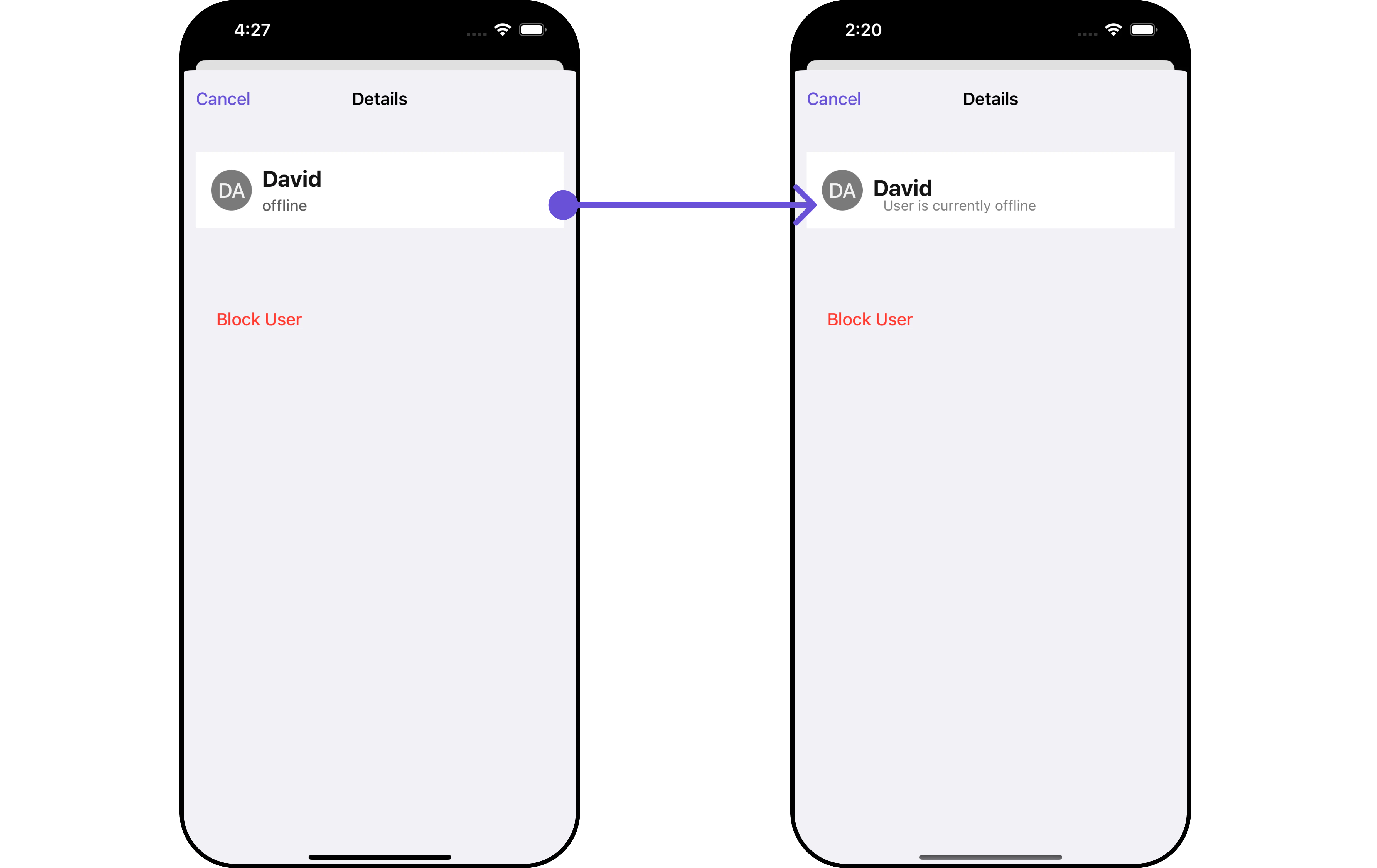 subtitleLabel.text = "User is currently offline"