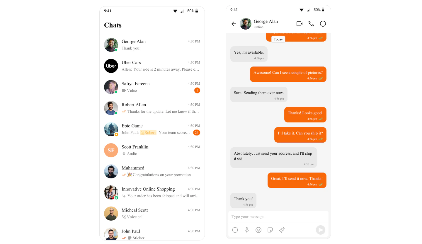 Colors inCometChatTheme allow you to maintain a consistent visual identity across your application by providing predefined colors for various UI elements, such as text, buttons, backgrounds, alerts, and more. These color definitions seamlessly adapt to both light and dark themes, ensuring an optimal user experience across different modes.