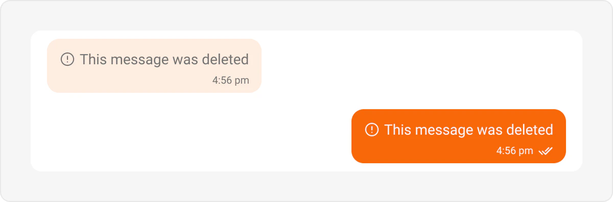 Delete bubbles are used to display messages that have been deleted by the sender. These indicate the message removal within the chat interface. Default