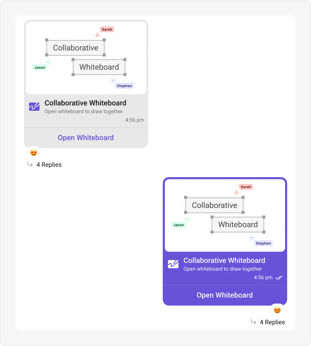 Collaborative bubbles display collaborative content, such as shared documents or tasks. Default