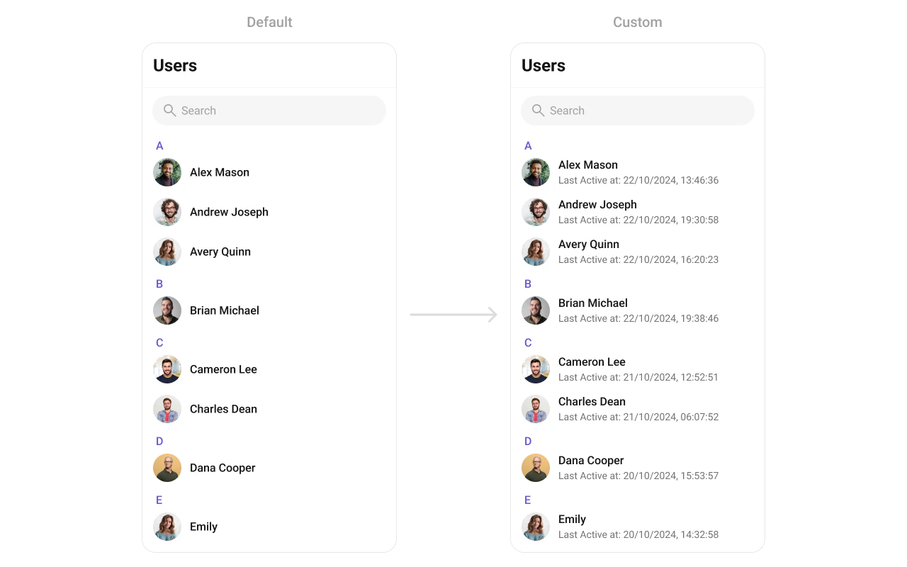 Custom renderer for the subtitle text.| Type | (user: CometChat.User) => JSX.Element |