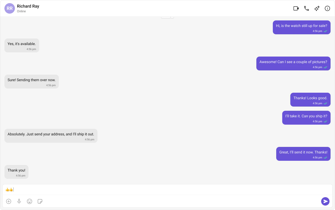 - Tap-to-view on mobile — tapping a conversation opens the message view