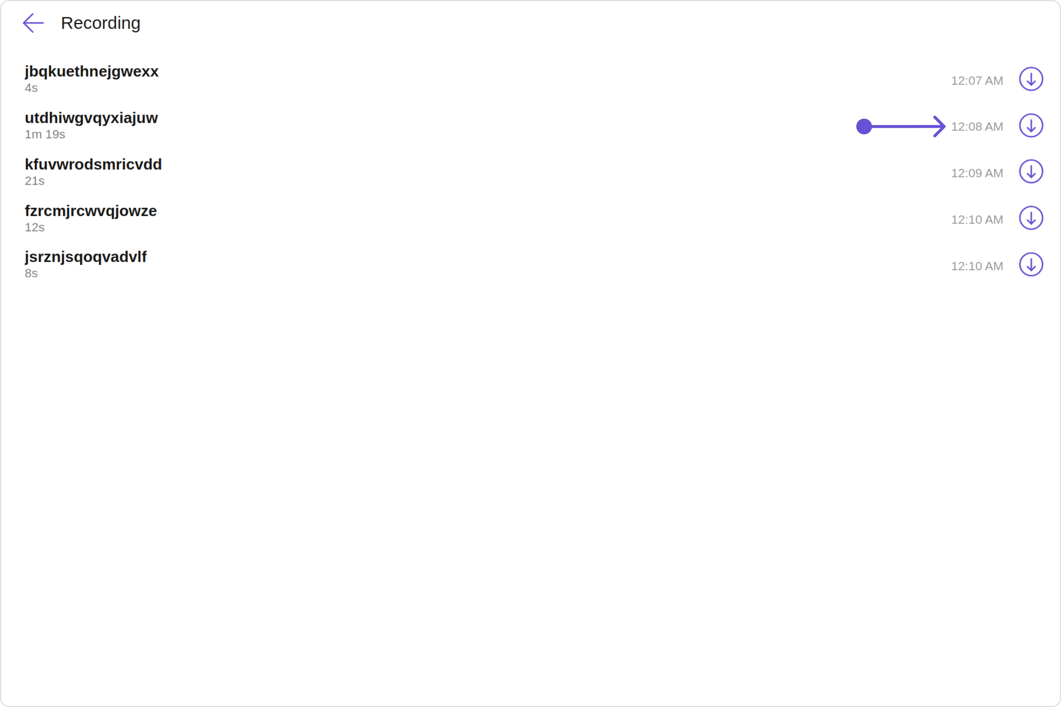 TheCometChatCallLogRecordings is a Component that shows a paginated list of recordings of a particular call. This allows the user to see all the recordings along with the duration as well as a download link using which one can download the recording.